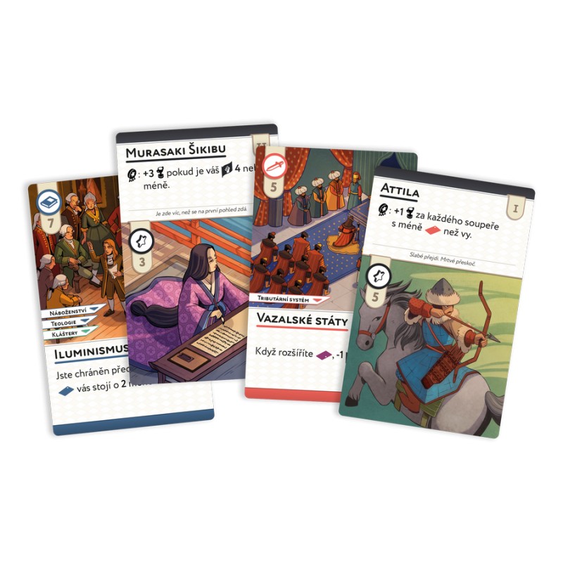 - Vyberte si kostky. . . ale pozor! Pokud celková hodnota přesáhne 10, zvýší se NEPOKOJ vaší civilizace.