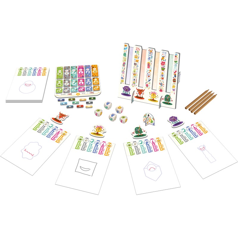 Postupně kreslete svou příšeru a zvyšujte si skóre na svém děsometru vkládáním žetonů příšery (zubů, rukou, nohou...).