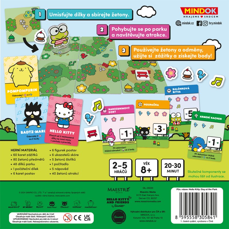 Dětská a rodinná hra Hello Kitty: Den v parku pro 2-5 hráčů tě zavede do roztomilého světa Hello Kitty a jejích přátel. Prozkoumávej park, sbírej předměty, plň zábavné úkoly!