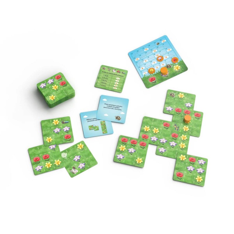 Nasbírejte se svým čmelákem co nejvíce pylu z lučních květin. Zábavná hra Tomáše Holka pro 1-4 hráče od 6 let, která neotřelým způsobem využívá skládání karet.