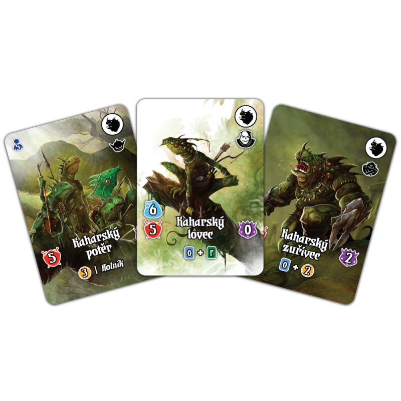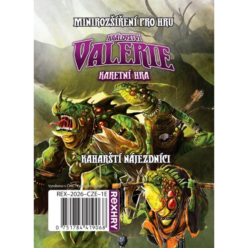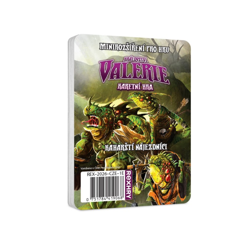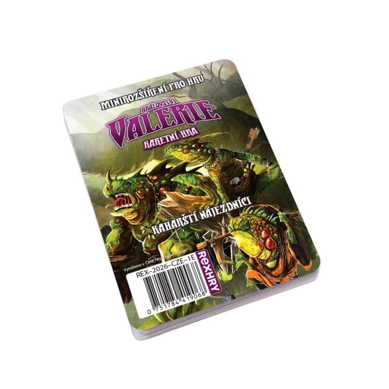 Kaharští nájezdníci je malé rozšíření pro populární hru Království Valerie: Karetní hra. Najdete v něm celou novou sadu nestvůr - Kaharské nájezdníky, ještěráky z bažin. Budete se jimi muset probít od potěru až ke kaharskému zabijákovi!