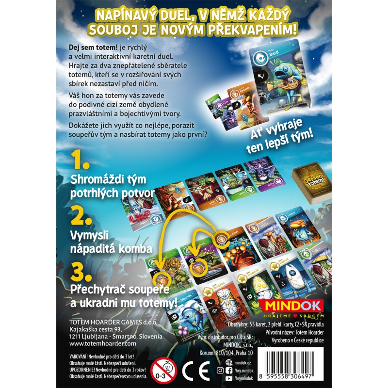 Dej sem totem! je dynamická karetní hra pro dva znepřátelené sběratele, kteří se snaží shromáždit vzácné Totemy a stát se vítězem! Vybudujte svůj tým z roztodivných tvorů rozdělených do klanů (Houba, Hmyzák, Ryba, Kostík), z nichž každý má unikátní schopnosti.