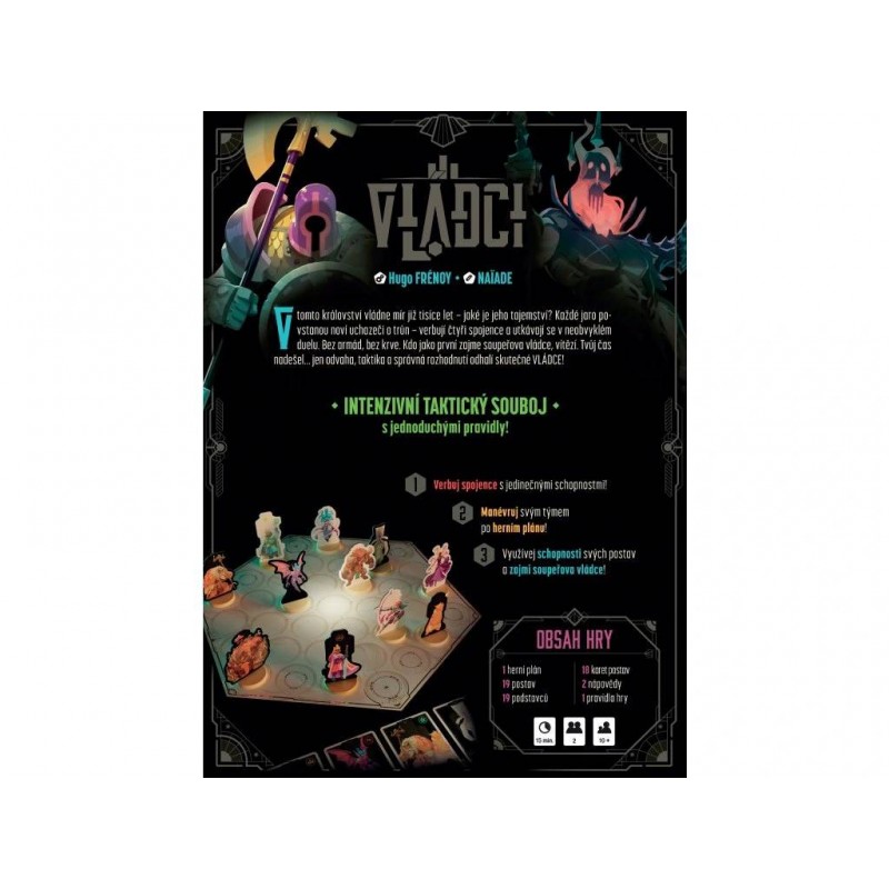 INTENZIVNÍ TAKTICKÝ SOUBOJ s jednoduchými pravidly! Verbuj spojence s jedinečnými schopnostmi! Manévruj svým týmem po herním plánu! Využívej schopnosti svých postav a zajmi soupeřova vládce!
