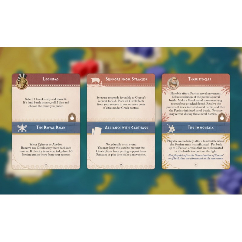 300: Earth & Water is a strategy game for two players. One player controls the Greeks, guided by Athenians and Spartans, and the other controls the Persians, led by the King of Kings, to see who will control more cities than their opponent.