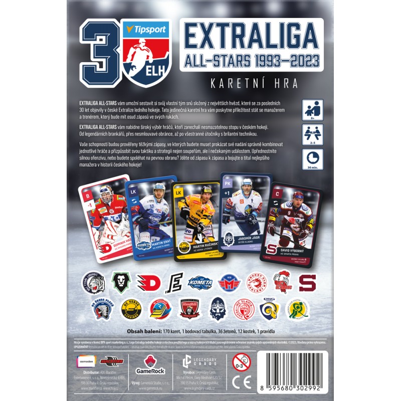 Karetní hra Extraliga All-Stars vám umožní sestavit si svůj vlastní tým snů a zahrát si zápasy proti živým protihráčům i „virtuálním“ soupeřům. Ve hře najdete všechny týmy ze sezóny 2022/2023 a jako bonus také týmy, které v třicetileté historii vyhrály extraligový titul. Každý tým je reprezentovaný šesticí hokejistů z celé samostatné extraligové historie, kteří byli vybráni ve spolupráci s jednotlivými hokejovými kluby. Ve hře pak najdete i největší osobnosti československého hokeje ve formě karet legend bez klubové příslušnosti. Je jen na vás, jak bude vypadat váš tým a jestli ho dokážete dovést až k titulu.