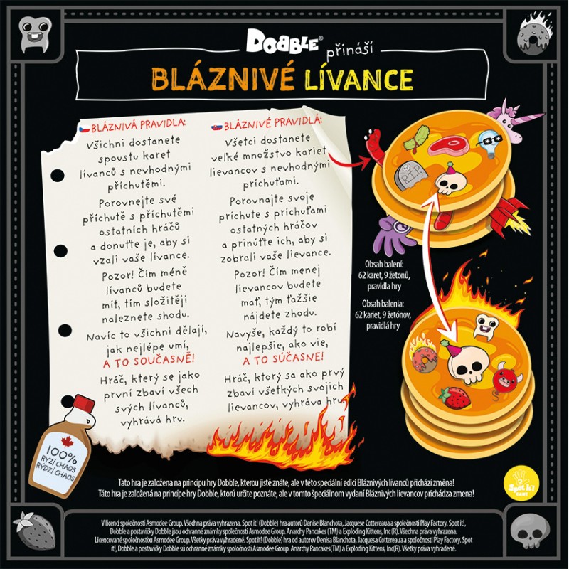 Všichni dostanete spoustu karet lívanců s nevhodnými příchutěmi a vašim úkolem je porovnat své příchutě s příchutěmi ostatních hráčů a donutit je, aby si vzali vaše lívance. Pozor! Čím méně lívanců budete mít, tím složitěji naleznete shodu. Navíc to všichni dělají, jak nejlépe umí, a to současně! Hráč, který se jako první zbaví všech svých lívanců, vyhrává hru.