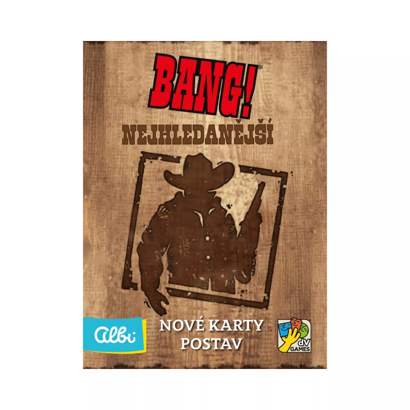 Bang! Nejhledanější je mini rozšíření pro karetní hru BANG!, které obsahuje 5 nových postav a 4 prázdné karty k dotvoření (2 herní karty a 2 karty postav).