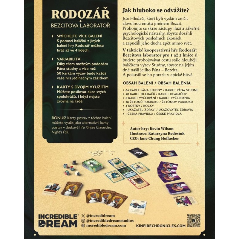 Rodozář: Bezcitova laboratoř je taktická a kooperativní karetní hra pro 1–2 hráče. Jako Hledači se budete probojovávat skrze dobře zamíchaný balíček výzev, abyste dosáhli Bezcity, pána studny, a postavili se mu v epické závěrečné bitvě.