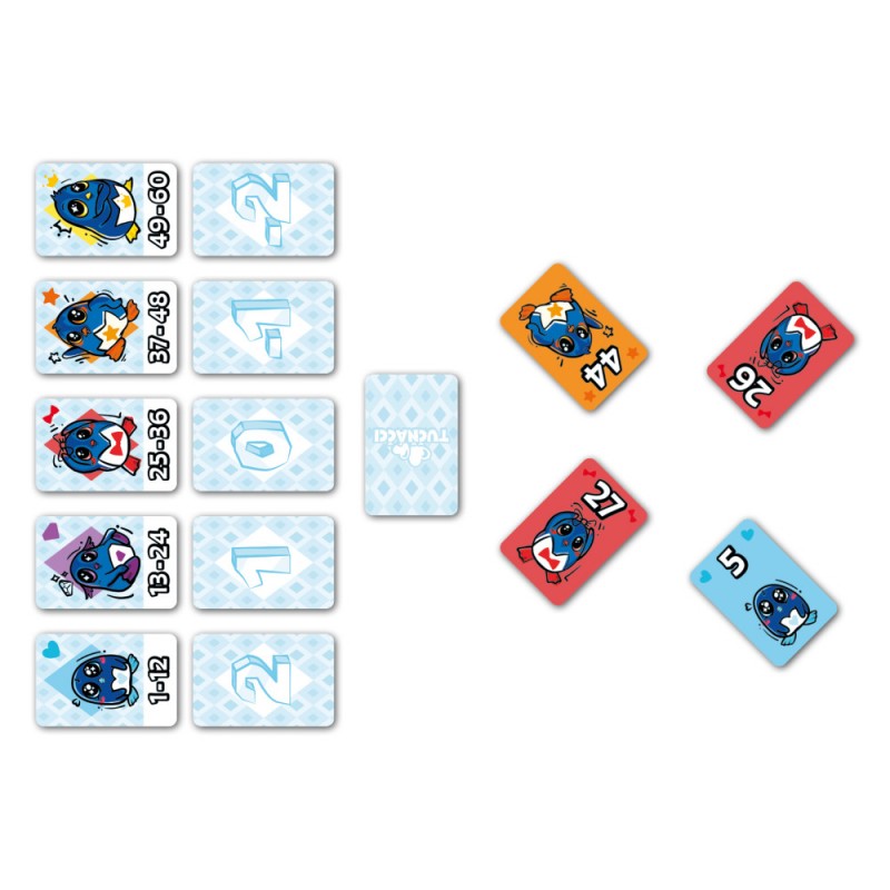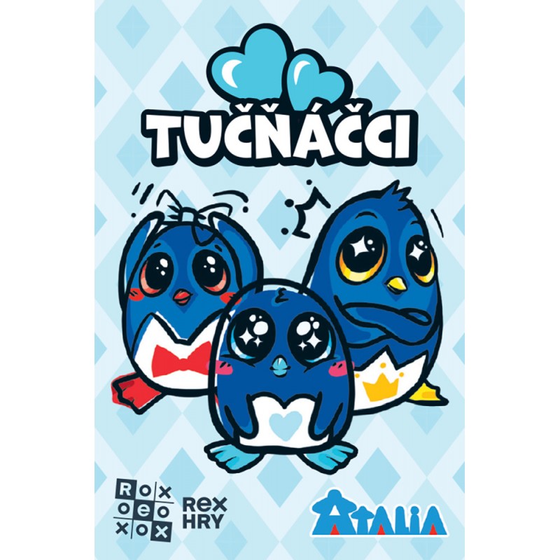Tučňáčci je malá štychová karetní hra, ve které je cílem hráčů přilákat k sobě ty nejroztomilejší tučňáčky! Ve hře je celkem šedesát karet v hodnotě 1-60 rozdělených podle velikosti do pěti barev. Hráči mají vždy dvě karty v ruce a ten kdo rámci štychu zahraje největší, bere vše. To ale ne vždy musí být dobře! Nejroztomilejší jsou totiž jen ti nejmenší tučňáčci, za které získáváte pozitivní body, naopak za ty největší body ztrácíte! Po odehrání všech karet se spočítá, kdo si vedl nejlépe! V pravidlech najdete i variantu, kdy mají tučňáčci náhodné bodové hodnoty, nikoliv seřazené dle velikosti.