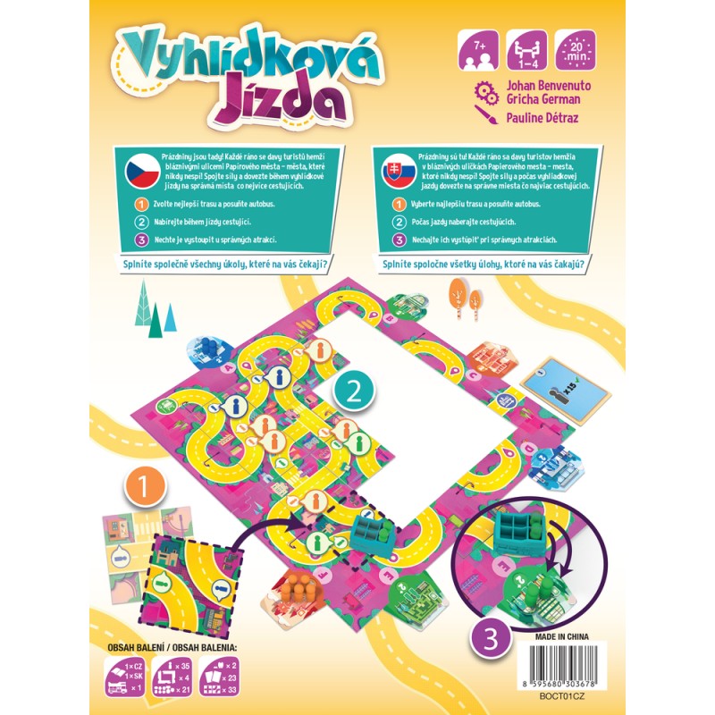 Vyhlídková jízda je kooperativní hra, ve které budete tvořit trasu pro turistický autobus a nabírat do něj cestující. Ty následně budete nechávat vystupovat u správných turistických atrakcí, abyste splnili rozmanité úkoly každého dne.