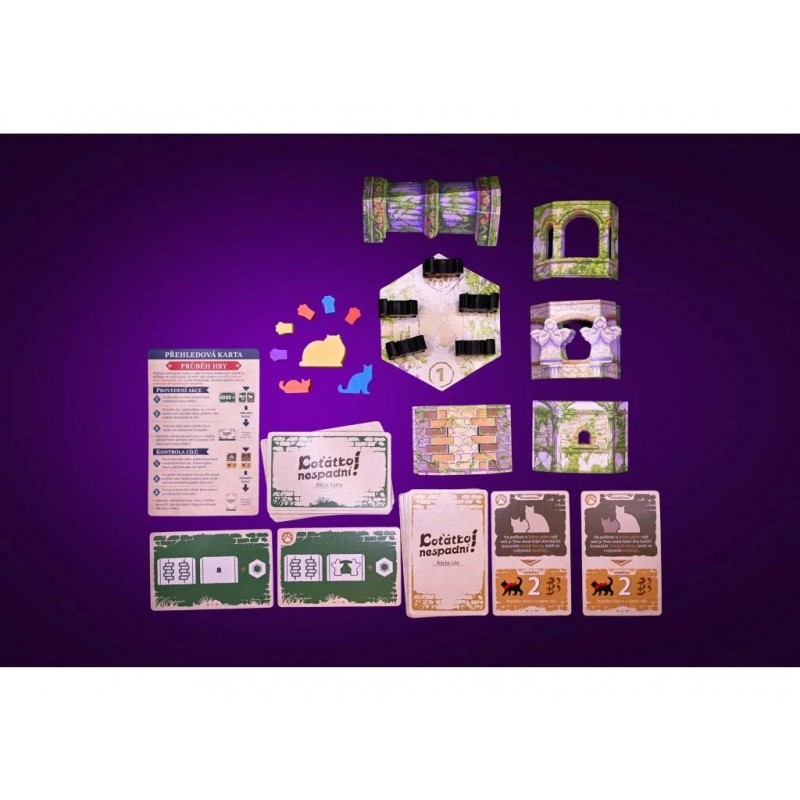 Koťátko, nespadni! je kooperativní balanční hra, ve které pomáháte Totovi, mladému černému koťátku, dostat se až do 10. patra nepříliš stabilní věže. Střídejte se ve svých tazích a stavějte věž pomocí dílků podlah a stěn. Nebo plňte podmínky, díky nimž může Toto rychle vyšplhat výš. Jakmile Toto vyběhne až na vrchol věže, společně vyhráváte hru!