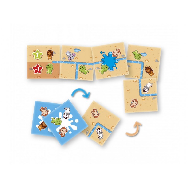 Každý hráč před sebou staví svoji vlastní řeku. Řeku stavíte tak, že berete karty z hromádky uprostřed stolu. Když si vezmete kartu z hromádky, otočte ji lícem (stranou s řekou) vzhůru a přiložte ji na konec své řeky. Na rubu každé karty jsou 3 zvířátka, ovšem na líci najdete jen 2 z nich. Musíte pečlivě volit karty, které si vezmete, ale zároveň je třeba postupovat rychle.