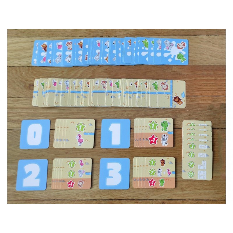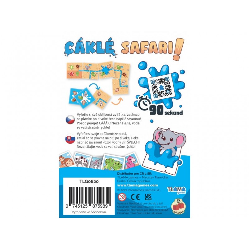 Cáklé safari je svižná hra v reálném čase, která trvá pouze 90 vteřin a pojme až 6 hráčů. Na začátku si vyberete jednu ze 4 obtížností bodování. Ze všech karet safari utvořte nesouměrnou hromádku uprostřed stolu. Pusťte časomíru!