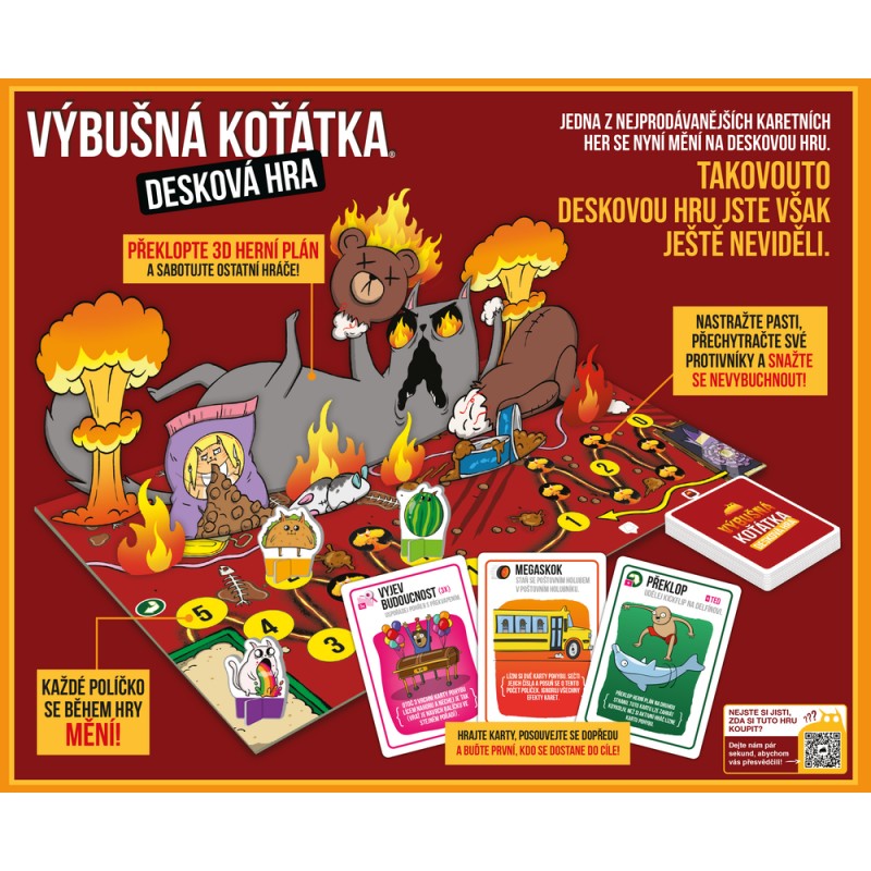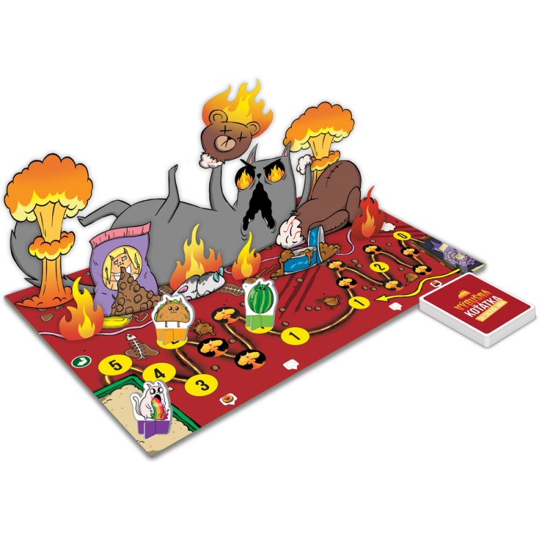 Závody, sabotování, magnety nebezpečí a překlopitelný herní plán. Ve hře Výbušná koťátka: Desková hra nikdy nebudete v bezpečí a smích se bude ozývat od celého stolu.