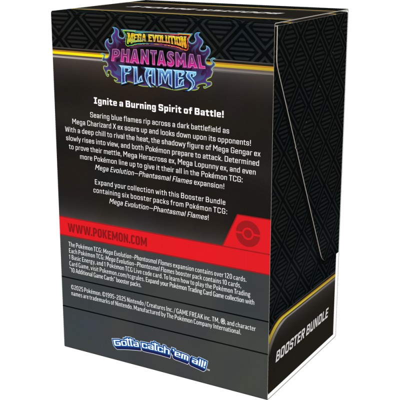 Mega Evolution 02 Phantasmal Flames booster obsahuje 10 náhodných karet.
