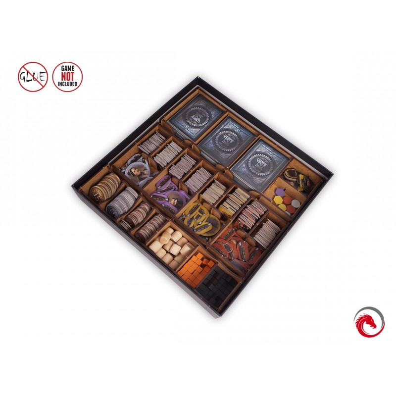 Díky insertu můžete uspořádat všechny herní komponenty a obalené karty tak, abyste je udrželi přehledně roztříděné a uspořádané. Už nemusíte hledat potřebné prvky během hry.