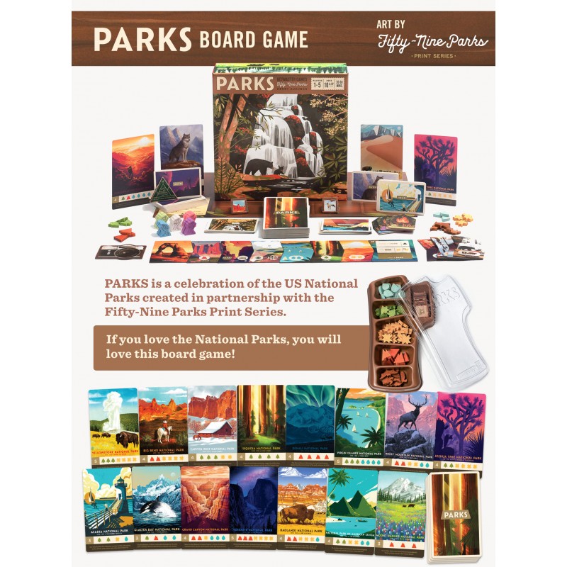 Ve hře PARKS na sebe hráči vezmou role trampů, kteří putují různými cestami napříč ročními obdobími. Během jejich cestování sbírají vzpomínky a upomínkové předměty z míst, která navštíví. Vzpomínky jsou v této hře platidlem. Hráči mezi sebou směňují vzpomínky za účelem navštívit co nejvíce Národních parků a odnést si z nich co nejvíce fotografií. Když zrovna necestují, shánějí hráči co nejlepší vybavení a vychytávky, které jim usnadní cestu. Na konci ovšem stejně záleží na tom, kdo navštívil nejvíce parků a jaké fotografie si z nich odnesl, tak vzhůru na výpravu!