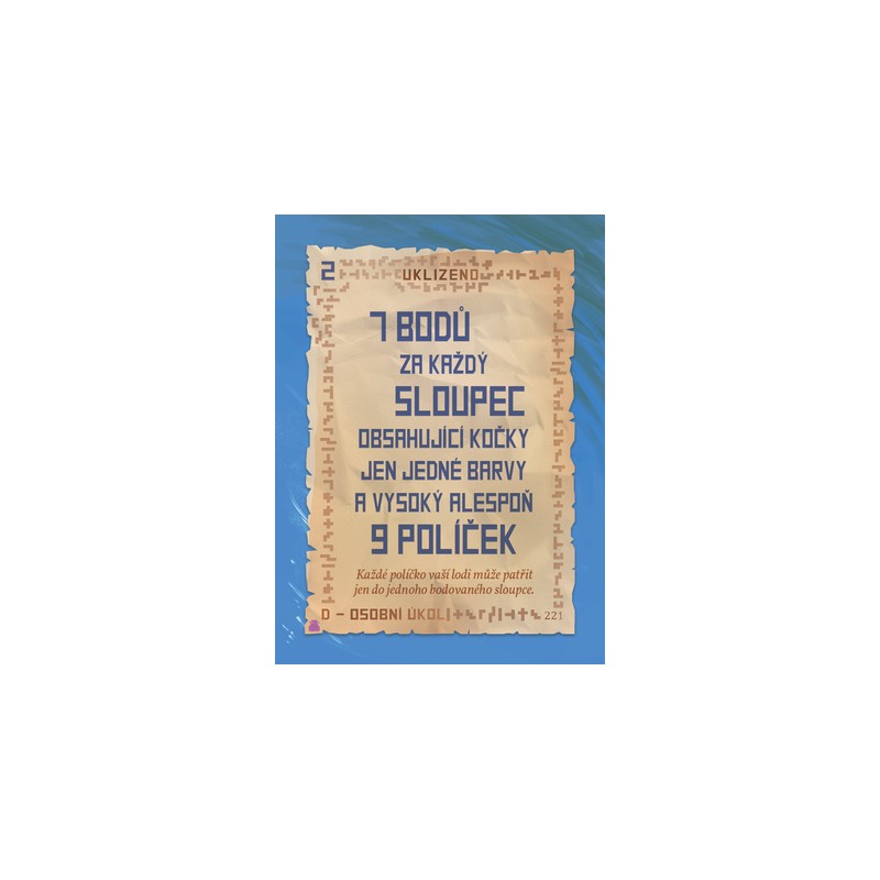 V této krabici najdete všechny bonusy, které ke hře Ostrov koček vyšly v rámci kampaně na Kickstarteru v roce 2019, jako např. dřevěné žetony ryb, hezčí figurky koček a 3 sady úkolů navíc.
