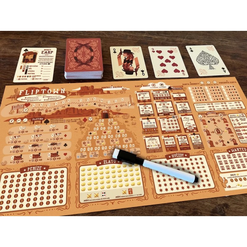 Hra typu flip and write (otoč a zapiš), ve které se snažíte získat hvězdy (vítězné body) prozkoumáváním Fliptownu, městečka divokého západu. Hra je ovládána balíčkem klasických pokerových karet, jejichž kombinace zapisujete suchými fixy na svoji hráčskou desku, mapu Fliptownu a jeho okolí.