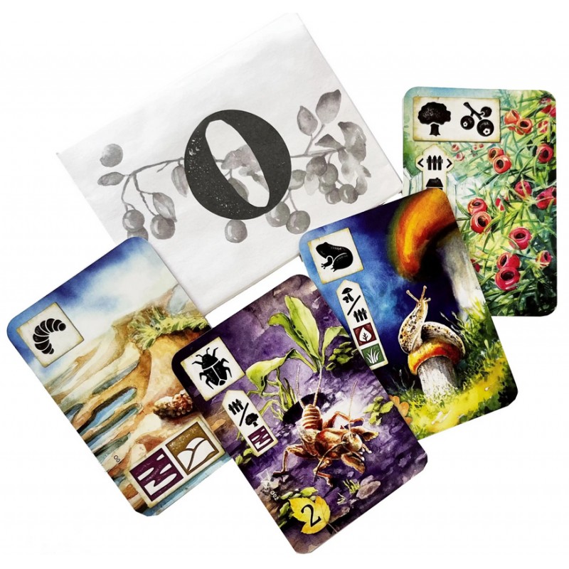 Zalepená obálky s označením O (4 karty). Tyto speciální promo karty můžete zamíchat běžným způsobem do hry Na louce.