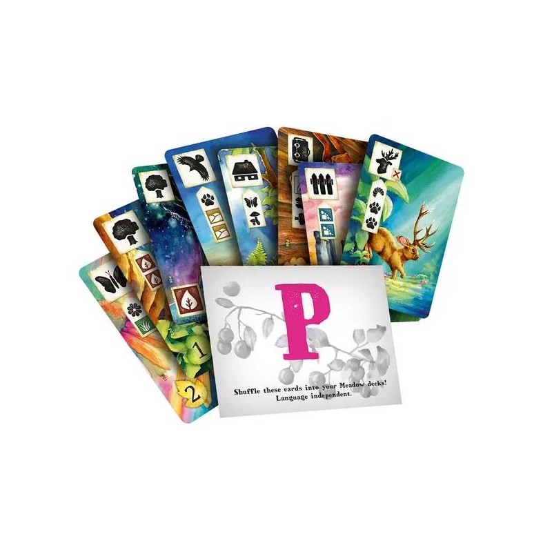 Zalepená obálky s označením P (8 karet). Tyto speciální promo karty můžete zamíchat běžným způsobem do hry Na louce.