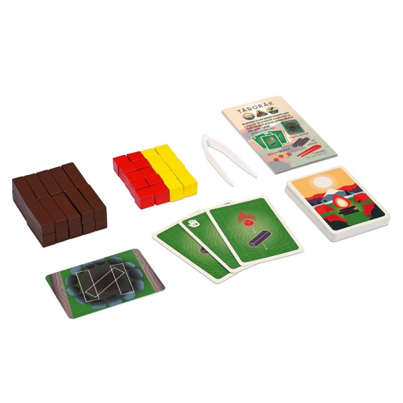 Táborák je dovednostní hra, ve které hráči společně přikládají do ohně, ale nesmí jim z něj spadnout kostky!