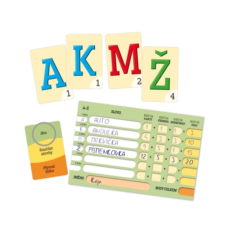 Netradiční slovní párty hra, ve které vítězí bohatá slovní zásoba a pevné nervy. Rozvíjí jazykové schopnosti, trénuje slovní zásobu, postřeh, kreativitu i soutěžního ducha.
