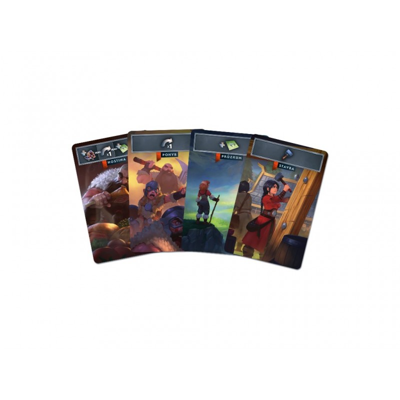 Dobývání Northgardu vyžaduje také důmyslné hospodaření se zdroji, abyste mohli stavět nové budovy, zlepšovat efektivitu svých válečníků, vylepšovat své karty na ruce a rozšiřovat území svého klanu. V zimní fázi je toto hospodaření ještě obtížnější, protože musíte své válečníky krmit, aby byli zdraví a spokojení.