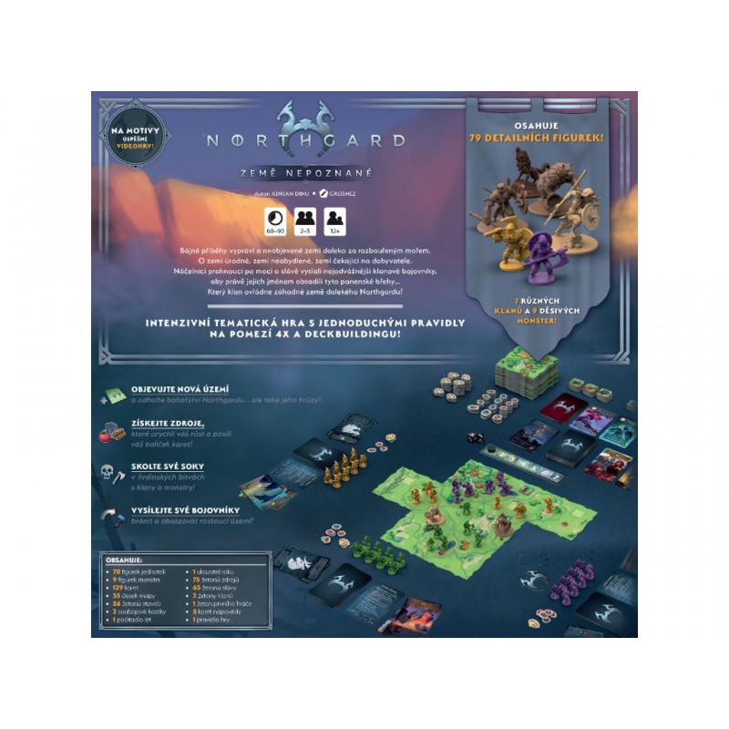 Hra Northgard: Země nepoznané, vycházející ze světa videohry Northgard zasazené do vikingských dob. Je plná dobývání a průzkumu. Každý hráč ovládá vikingský klan, který se snaží dosáhnout vítězství zejména obsazováním a držením nejcennějších území tohoto nového neobydleného kontinentu.