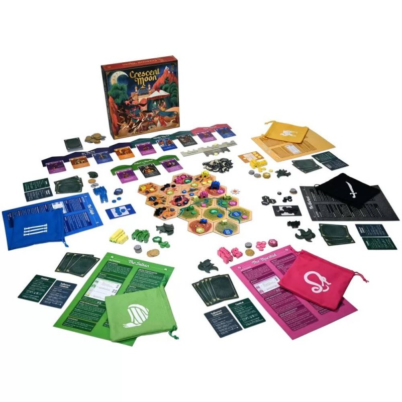 Ve svitu půlměsíce je překrásná hra pro čtyři až pět hráčů s ústřední mechanikou územní převahy. Vžijte se do role jedné z pěti radikálně asymetrických postav, z nichž každá musí plnit své vlastní cíle pomocí svých jedinečných akcí a schopností, které mění obecná pravidla hry. Vybudujte vzájemně prospěšné vztahy se svými spojenci, oslabujte své soupeře a moudře si vybírejte své přátele a nepřátele v této nelítostné hře o moci a politice.