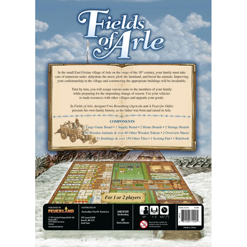 Ve hře Fields of Arle, kterou vytvořil Uwe Rosenberg, žije jeden až dva hráči jako farmáři v malém a poklidném městečku Arle ve Východním Frísku. Díky lnu pěstovanému na půdě obklopující vesnici je to výnosné místo pro práci i život. Fields of Arle hráče provede čtyřmi a půl lety této éry prosperity, přičemž se střídáním ročních období jsou k dispozici různé příležitosti. Obdělávejte půdu, abyste využili poptávku po lnu, nebo najděte jiné způsoby, jak z prosperity městečka vytěžit co nejvíce.