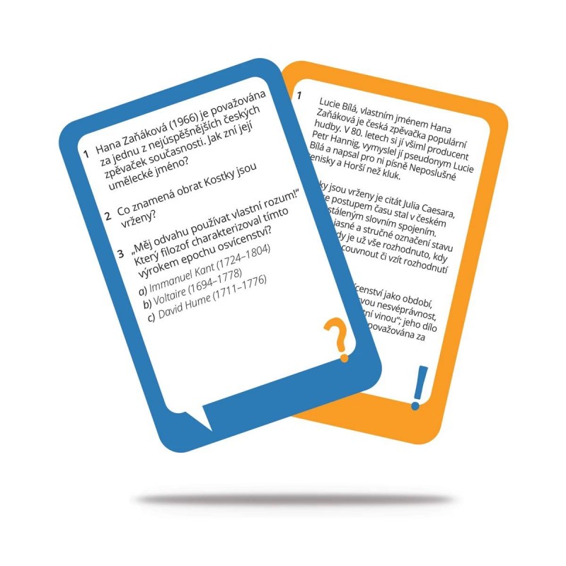 Na každé kartě najdete sadu 3 otázek, pro odpovědi stačí otočit. Sbírejte vědomosti a také plusové body s každou zodpovězenou otázkou a zabavte se jak na cestách, tak třeba při setkání s přáteli.